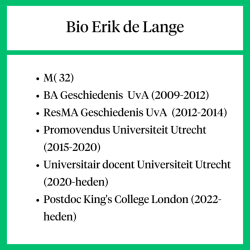 In 2009 ben ik gestart met de bachelor Geschiedenis aan de Universiteit van Amsterdam (UvA). Ik kom uit Steyl, een klein dorpje onder Venlo – wat zelf al geen grote stad is, met twee middelbare scholen en een café waar iedereen elkaar kende. Ik verheugde me enorm op de studie en wilde heel graag geschiedenis studeren. Omdat ik een echte millennial ben had de universiteit voor mij als eerstejaars iets Harry Potter-achtigs. Ik weet nog goed dat tijdens het eerste hoorcollege een vrij norse oude hoogleraar op een Maarten van Rossem-toontje uitlegde dat we hier geen les volgden maar college, en geen proefwerk maakten maar een tentamen.