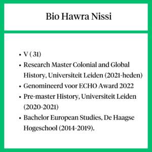 Ik ben in september 2021 begonnen aan de Research-Master Colonial and Global History aan de Universiteit Leiden. Ik was erg onzeker en gestrest toen ik begon aan de studie. Omdat ik van het hbo kwam, moest ik een premasterprogramma Geschiedenis volgen. De premaster ervoer ik als erg zwaar, omdat ik gelijk moest beginnen met tweedejaars-geschiedenisvakken. En dat terwijl ik helemaal niets wist van geschiedenis, laat staan Nederlandse geschiedenis. Daardoor had ik vaak het gevoel dat ik extra hard moest studeren en werken om die achterstand in te halen. Ik had zoveel last van stress dat ik tijdens het eerste semester begon met koffiedrinken. Ik was heel erg bang om te falen.