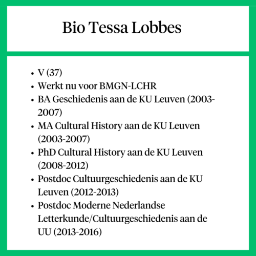 Tessa Lobbes, cultuurhistoricus en managing editor van BMGN – Low Countries Historical Review, begon als 17-jarige eerste generatiestudent aan de opleiding geschiedenis in Kortrijk, Vlaanderen. In dit interview vertelt ze over de intellectuele uitdaging en financiële druk die studeren met zich mee kan brengen.