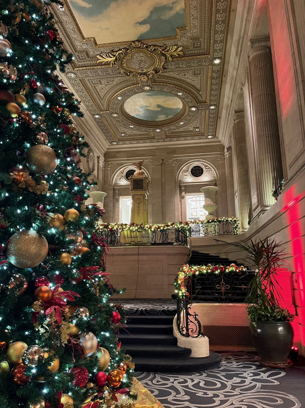 Tijdens het congres was de statige Boulevard Room van het Hilton nog in kerstsfeer.