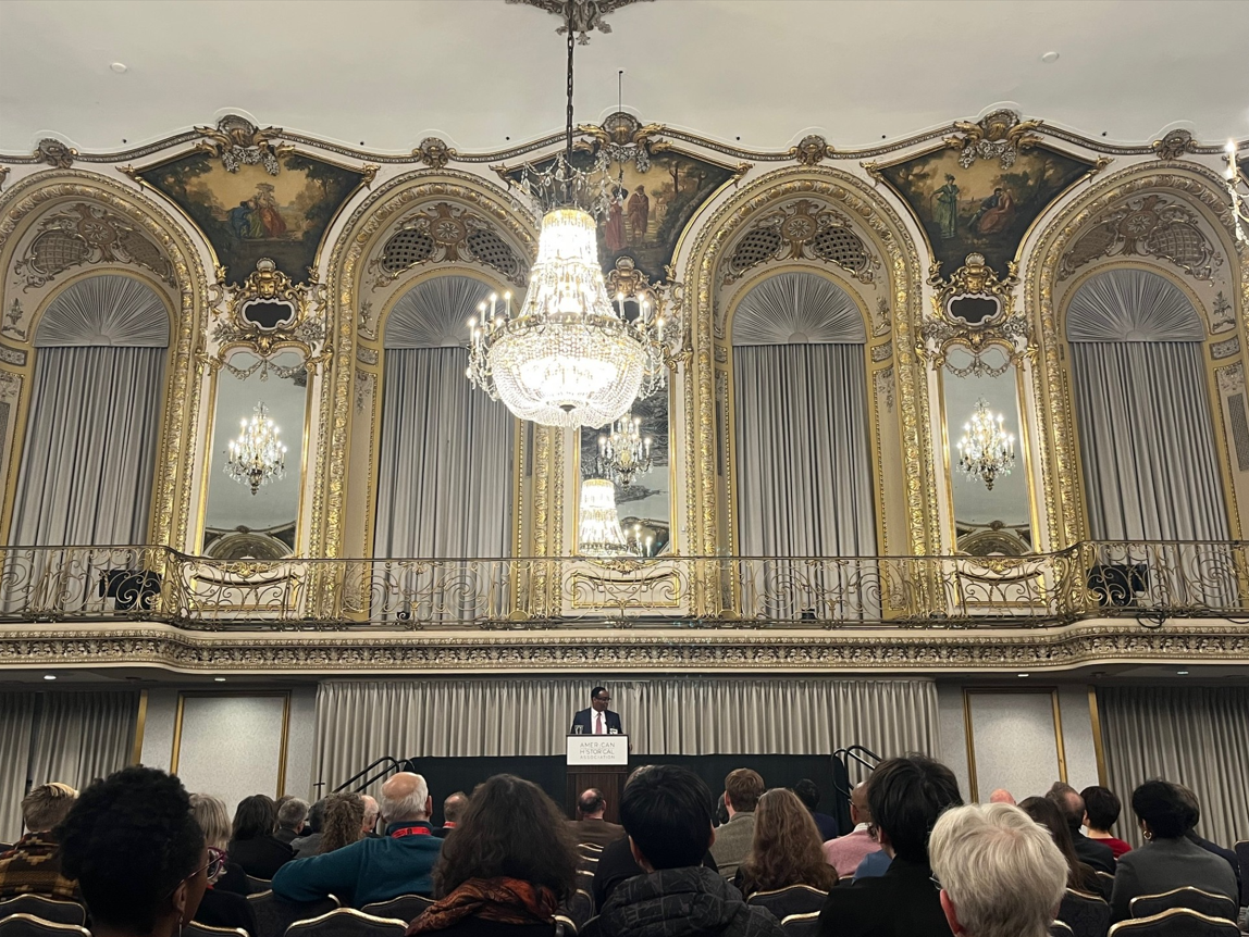 AHA-voorzitter Ben Vinson III tijdens zijn presidential address, getiteld ‘Reflections on Our Times’